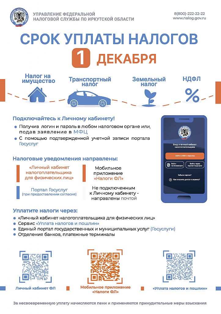 Срок уплаты налогов 1 Декабря